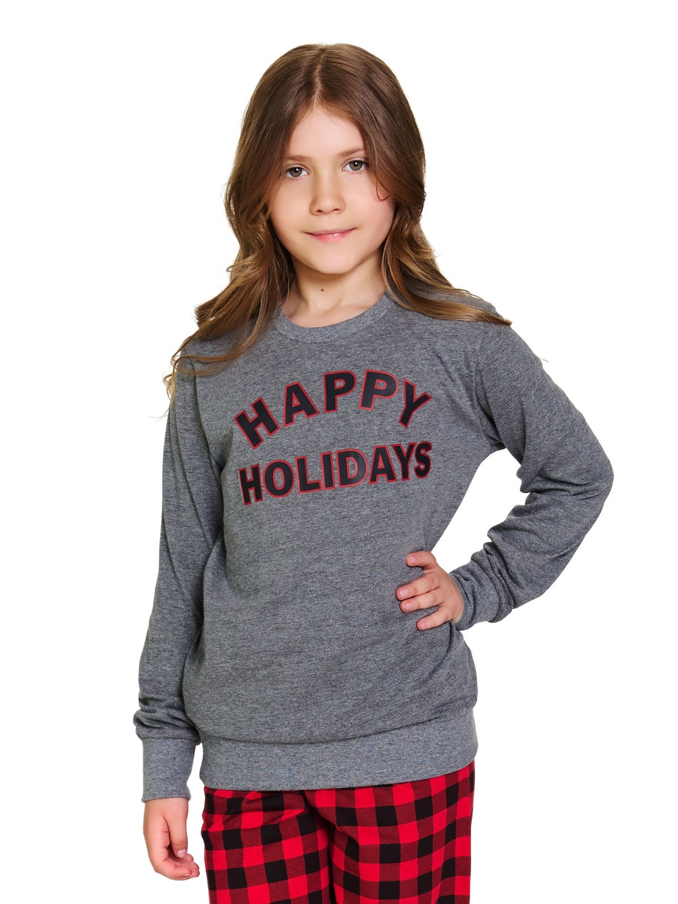 - Effen top met opdruk “HAPPY HOLIDAYS”: Deze leuke top met lange mouwen is ideaal voor comfort en stijl.