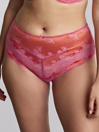 Maak kennis met onze nieuwe Clara Deep Brief – een verfijnde combinatie van elegantie en comfort. Dit prachtige model verenigt een levendige oranje tint met delicaat roze kant, wat zorgt voor een tijdloze, stijlvolle uitstraling die moeiteloos past bij elke garderobe.