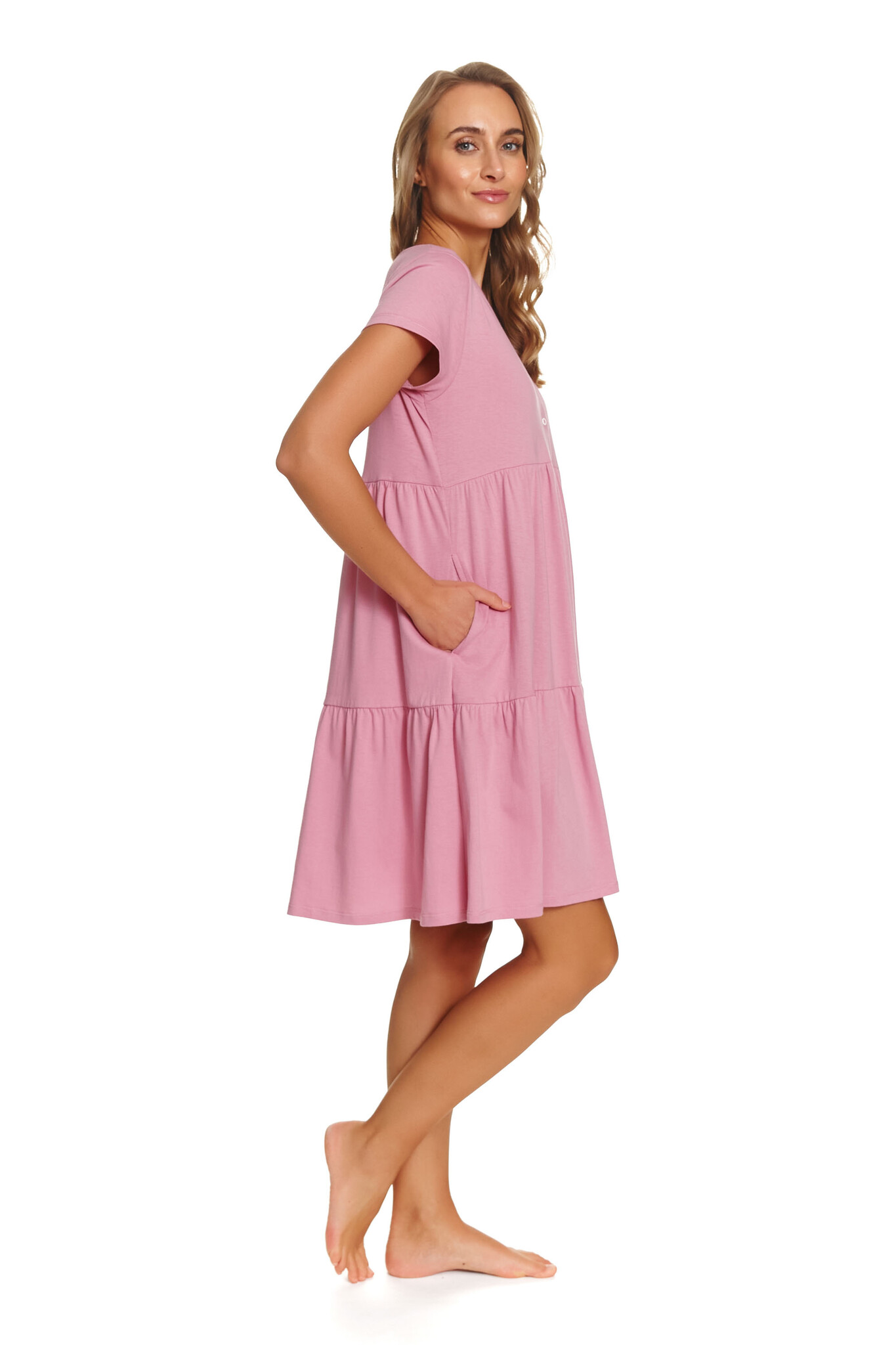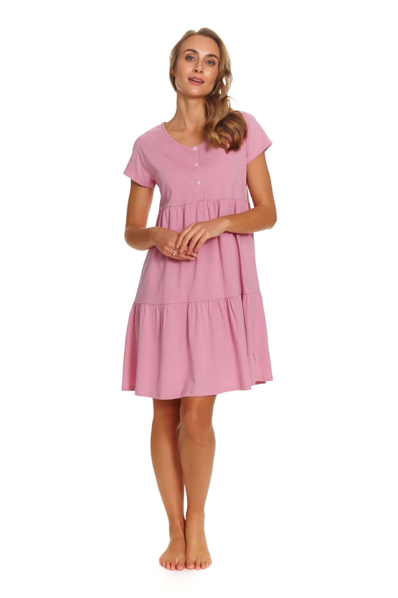 Katoenen nachthemd dames met korte mouw en drukknopen – ideaal voor zwangerschap en borstvoeding.