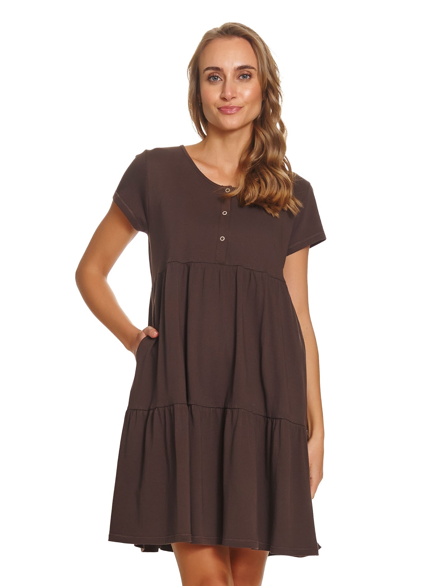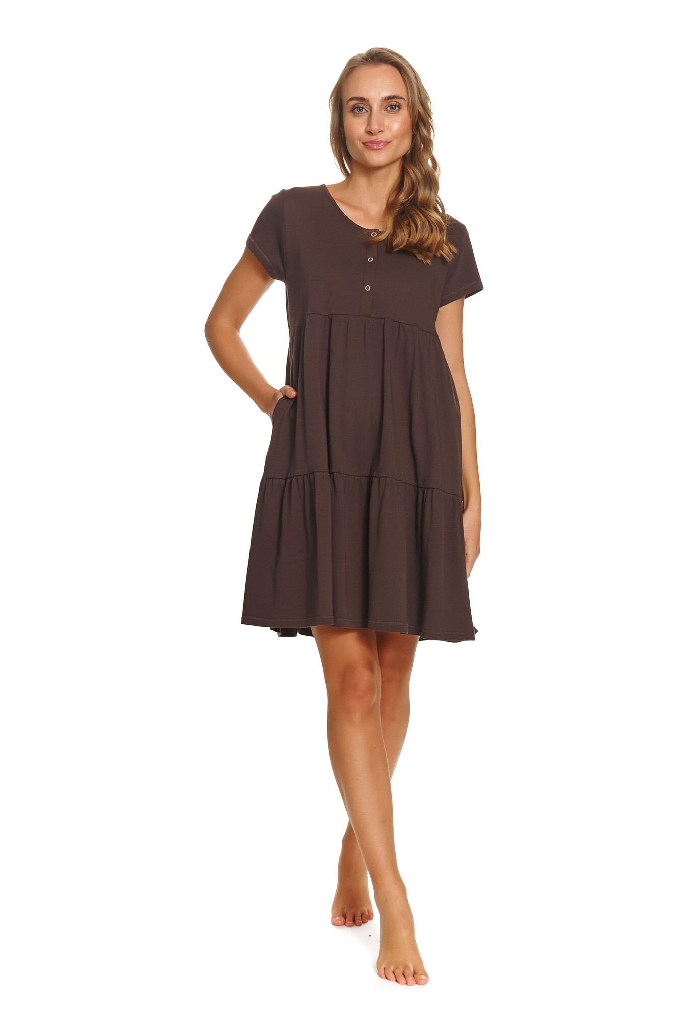 Katoenen nachthemd dames met korte mouw en drukknopen – ideaal voor zwangerschap en borstvoeding.