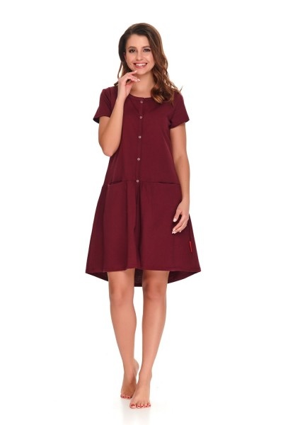 Katoenen dames nachthemd. Bevallingsjurk en voedingsnachthemd met knoopsluiting en zakken. Comfortabel kraam nachthemd. EU productie