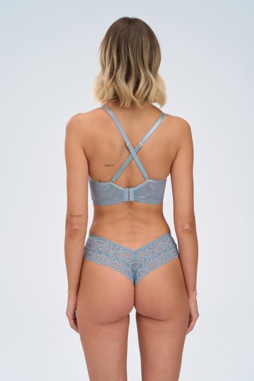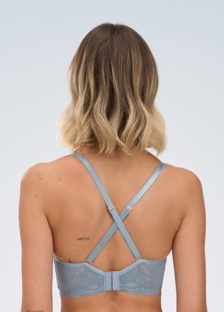 Ga voor een extra sterk push-up effect! Deze beugelvrije bh lift en centreert de borsten voor een opvallend, verleidelijk decolleté – perfect voor kleine tot middelgrote cupmaten. Het moderne design met geometrisch kant, geïnspireerd op kristalstructuren, geeft de bh een krachtige en stijlvolle uitstraling. Roze-gouden details zorgen voor een subtiele sierlijke glans, terwijl het langwerpige parelmoeraccent het licht vangt als zonnestralen op het water.