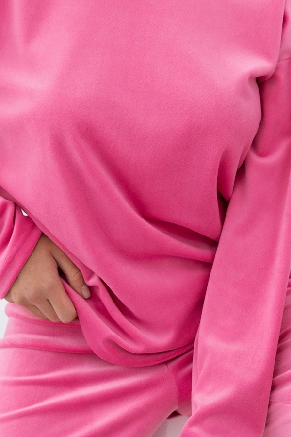 Damespyjama van zacht velours. Elegante roze pyjama met lange mouwen en rechte broek. Gemaakt in de EU