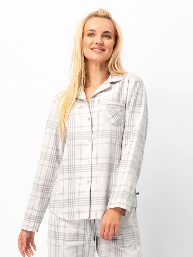 Deze elegante pyjama ondersteunt je dagelijkse rust en zorgt ’s nachts voor een optimale huidverzorging. Een comfortabele set voor liefhebbers van zachte, geruite flanel.