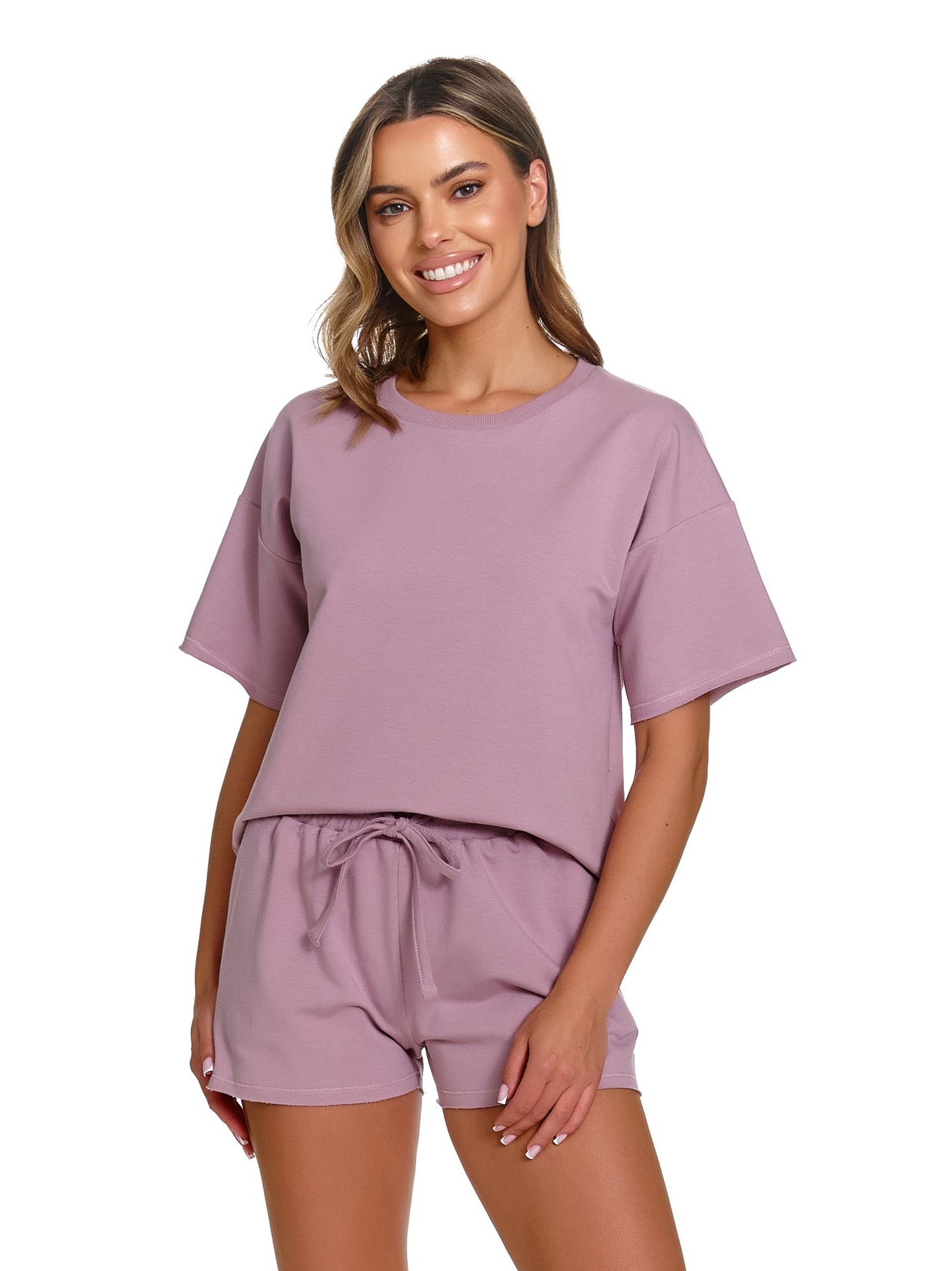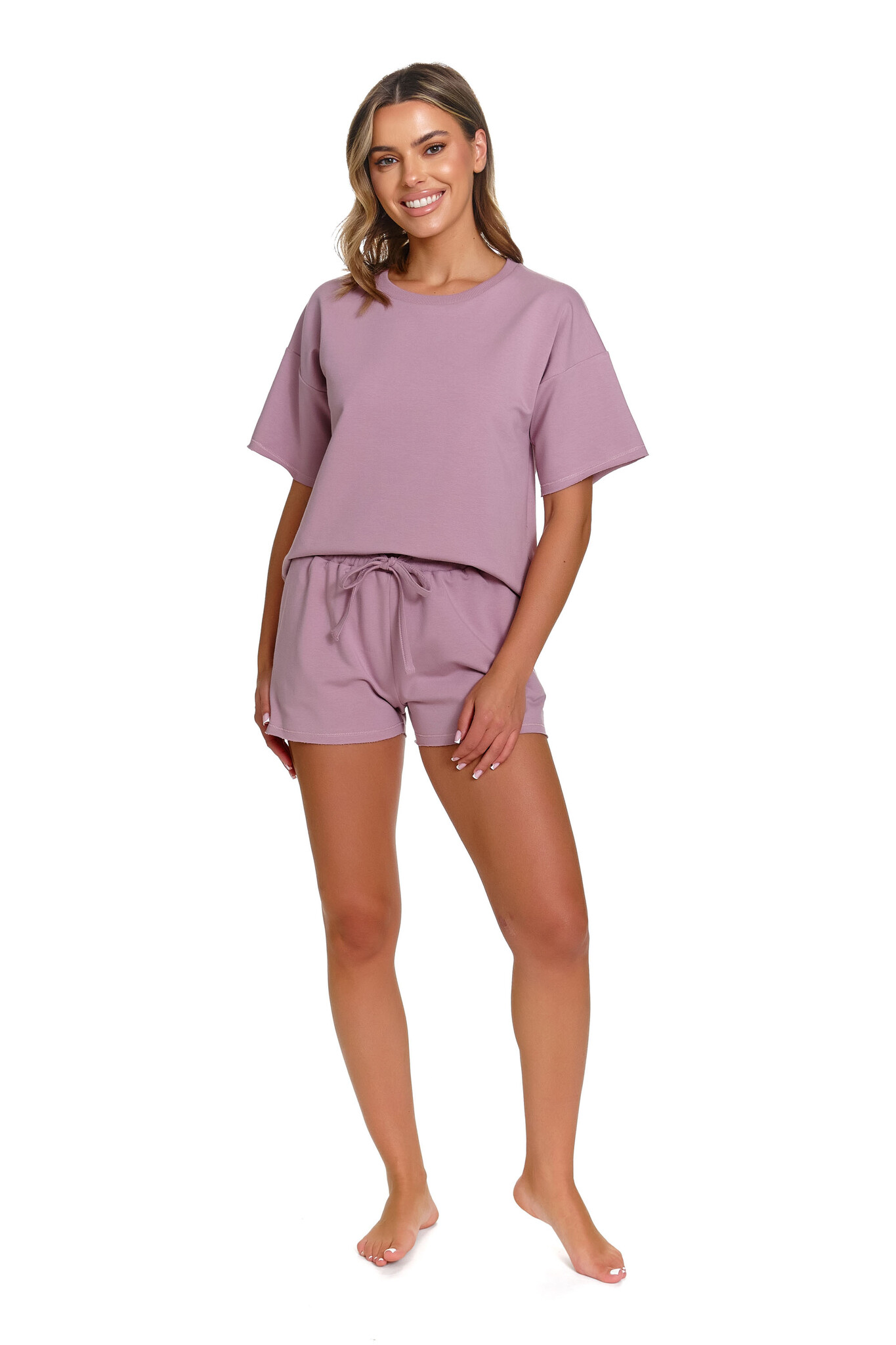 - Shortama set bestaande uit een oversize t-shirt en korte broek — ideaal als homewear of zomerpyjama