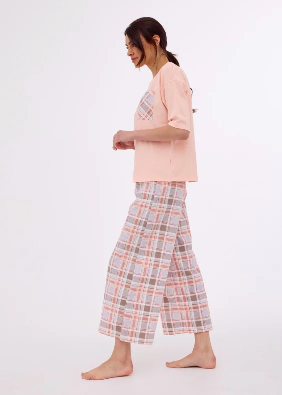 Een bijzondere damespyjama met een boxy top in zachtroze kleur – de perfecte combinatie van comfort en subtiele charme.