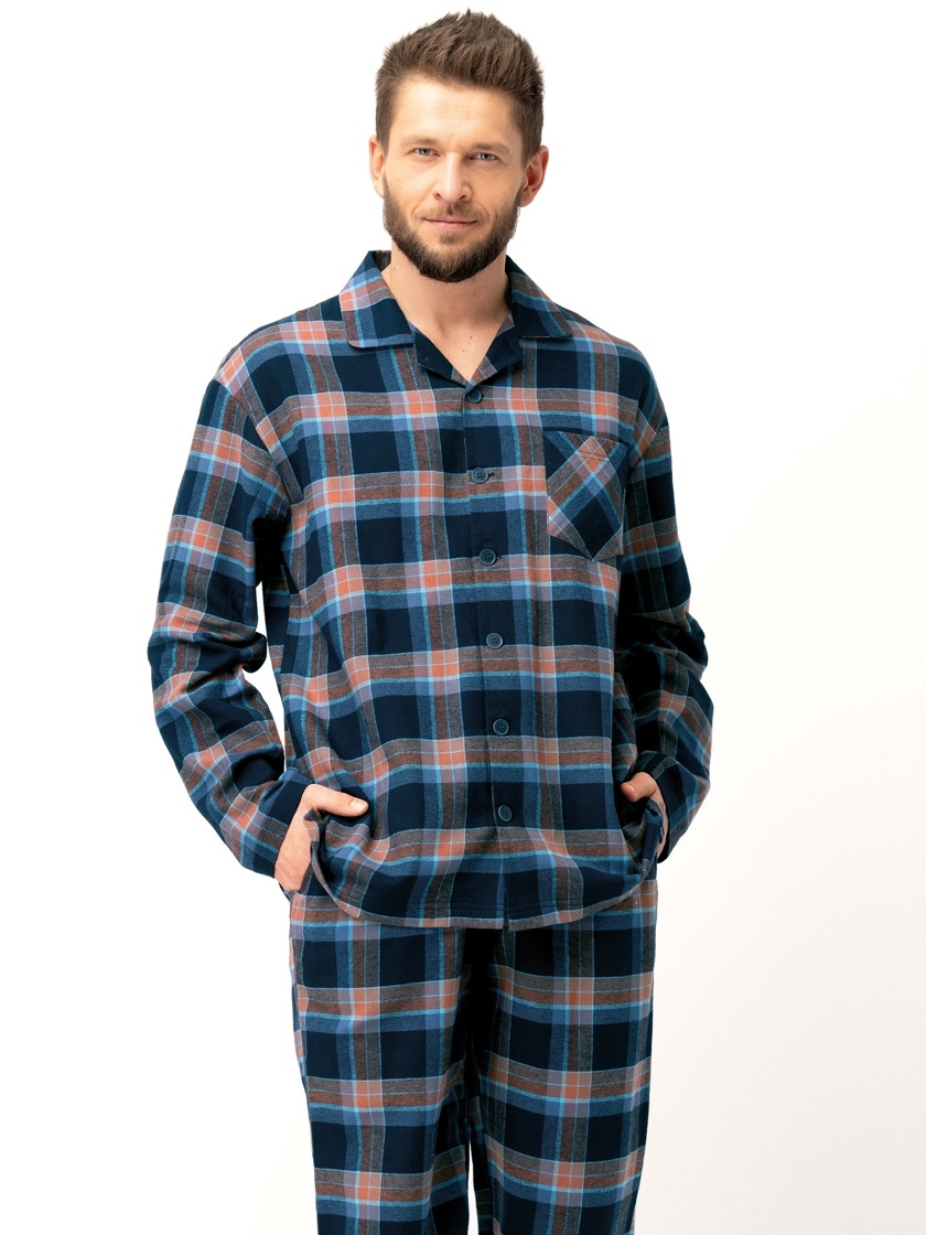 Deze klassieke heren pyjama in elegante tinten van blauw en bruin biedt ultiem comfort tijdens koude winternachten. De tijdloze combinatie van een fijn ruitpatroon en de zachte, warme flanellen stof maakt dit een must-have voor elke man die houdt van comfort en stijl. Gemaakt van 100% hoogwaardige katoenen flanel, voelt deze pyjama heerlijk aan op de huid en biedt langdurige warmte.