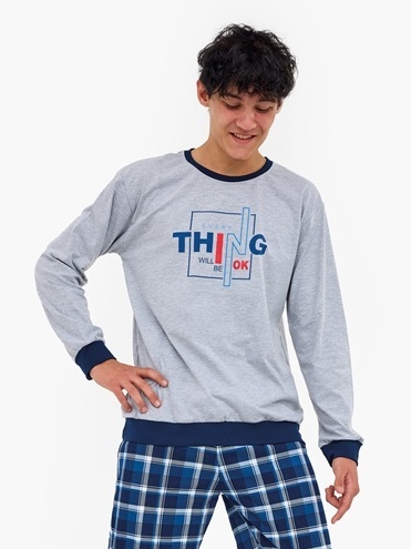 Winter pyjama voor tiener jongens. Met print en geruite broek.