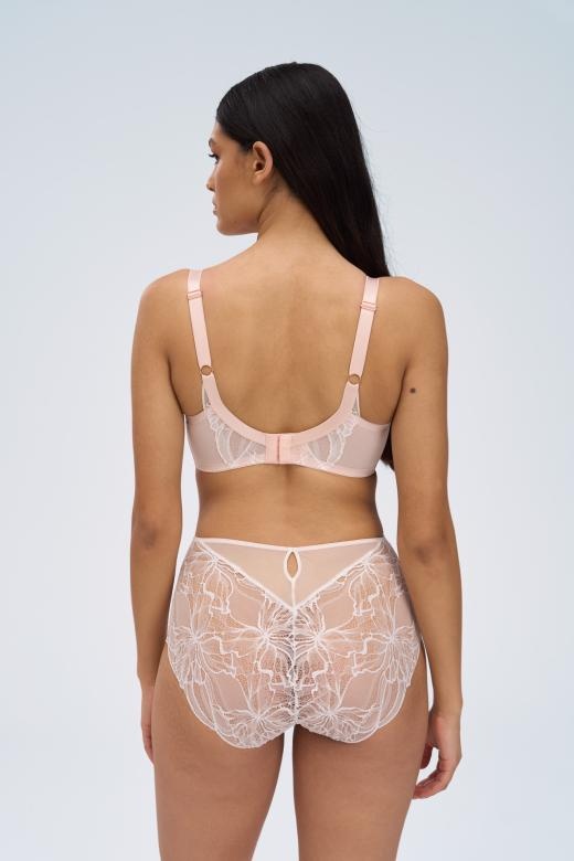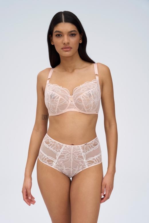 De Fizzy Delight slip met hoge taille – bruisend genot – is de essentie van vrouwelijke elegantie en zachtheid, gevangen in lingerie. Gemaakt van uitzonderlijk zachte kant met een bloemenmotief (Lace Flora), betovert deze slip met een subtiel kleurenpalet: van stralend off-white, via pastelroze, tot luxe details in roségoud. Een perfecte keuze voor vrouwen die comfort willen combineren met een verfijnde uitstraling, zowel voor dagelijks gebruik als voor speciale gelegenheden.