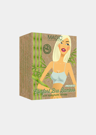 De Body Hugging Bamboo Collectie van MAGIC Bodyfashion is gemaakt met natuurlijke, eco-vriendelijk Tanboocel™ Bamboe vezels. De unieke eigenschappen van uit bamboe gemaakte stof (extreem zacht, beter ademend dan katoen, vocht opnemend en anti allergie) gecombineerd met de duurzame eigenschappen maken dit tot een perfect alternatief voor traditioneel textiel. De bh heeft ingebouwde support en een beugelloos design. De speciaal uitneembare cups zorgen voor mooi gevormde buste en een fraai decolleté. De spaghetti straps zijn verstelbaar en deze beugelloze bh is geschikt om elke dag te dragen onder al je verschillende outfits. Kortom de Comfort Bra Spaghetti Straps is de ideale bh voor als je op zoek bent naar de meest zachte, duurzame en comfortabele bh!