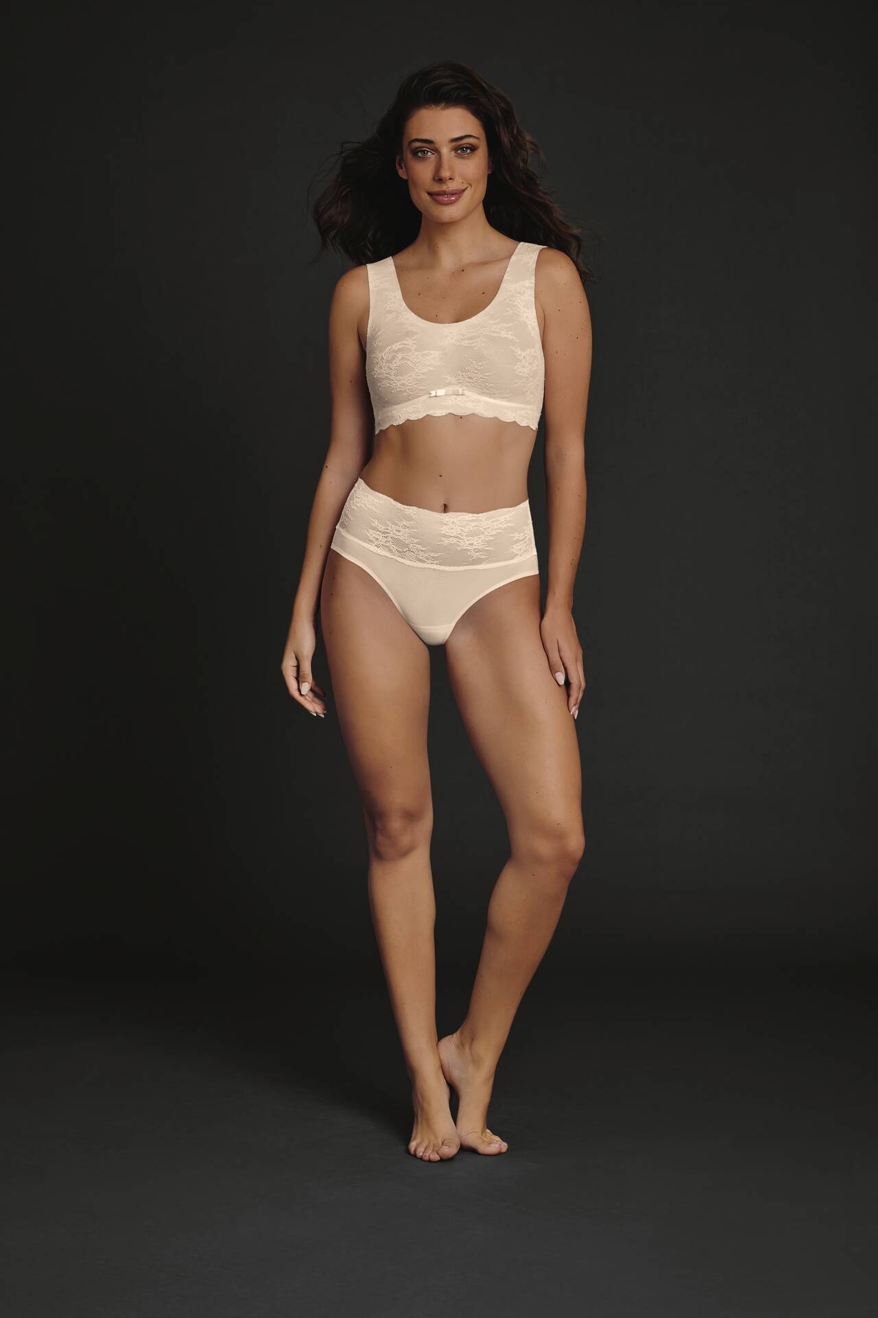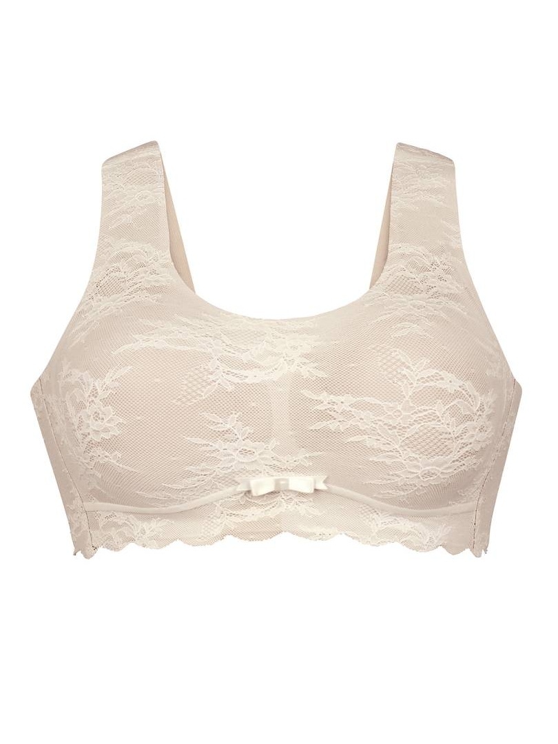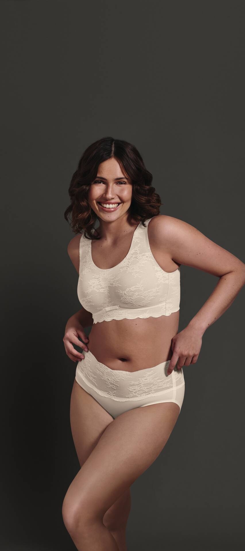 Nonchalant, natuurlijk, vrouwelijk: De ultracomfortabele bralette is een combinatie van cosyness en style. Thuis onder een kimono of als stijlvolle lingerie onder een feestjurk, de ontspannen bralette met een optiek van gebloemd kant, decent versierd met een boord van zachte zijde zorgt voor een goed humeur en een mooi figuur. De moulded cups met uitneembare schuimschalen bieden een perfect comfort. De schalen zijn licht gepolsterd en ademend door fijne gaatjes in het schuim. Een prachtig verhullend effect, vooral onder een nauwsluitend zomertopje.