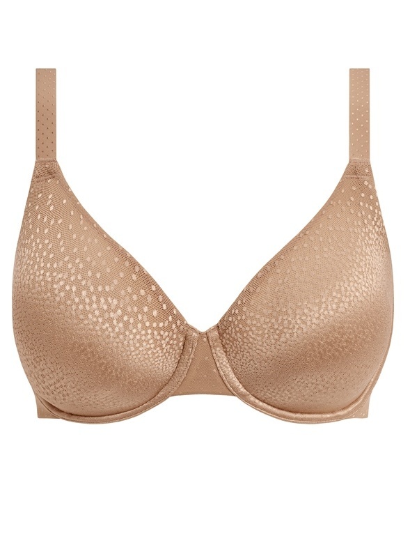 Stevige, ondersteunende cups met een elegante dot-jacquard stof en subtiele glans