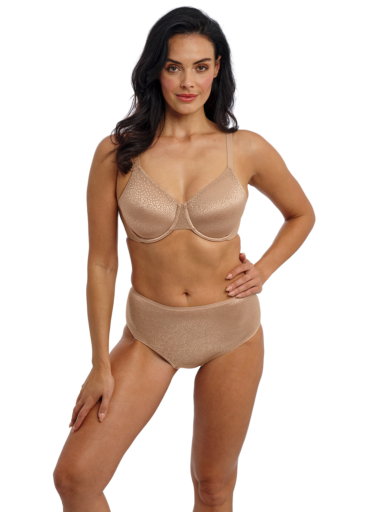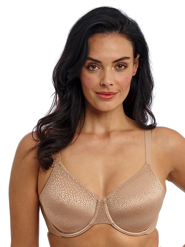 Microdunne spacer-band aan de achterkant, speciaal ontworpen om rug- en zijbobbeltjes te minimaliseren, afgewerkt met sierlijke jacquard