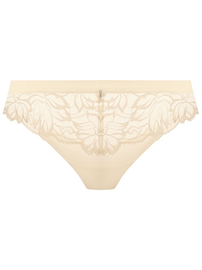 Sierlijke geschulpte stretchkant, over een zachte stretch mesh aan de voorzijde